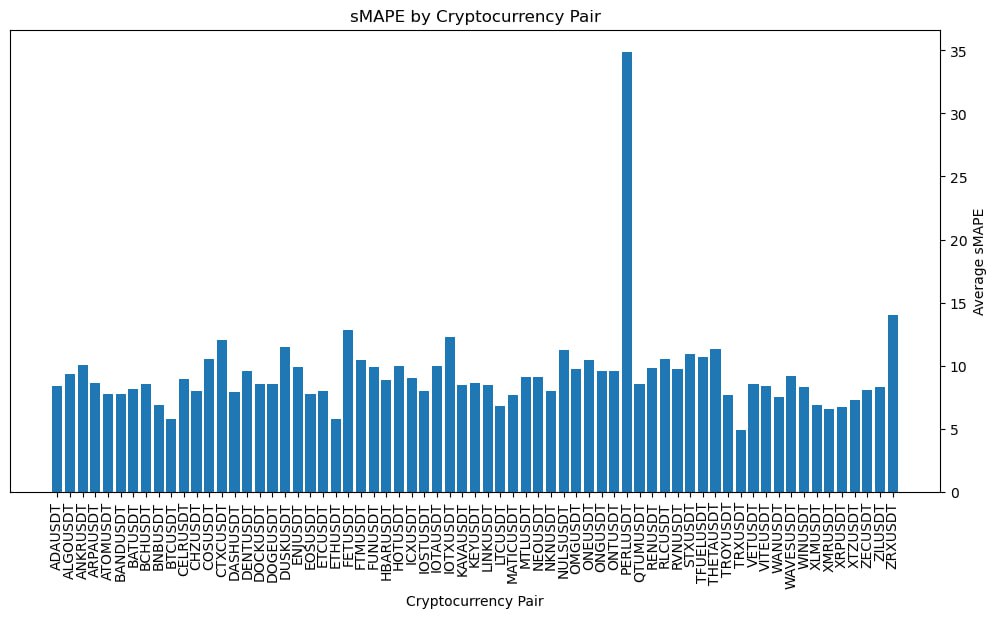 Individual trades, weekly trading reports, and monthly sMAPE by cryptocurrency pair